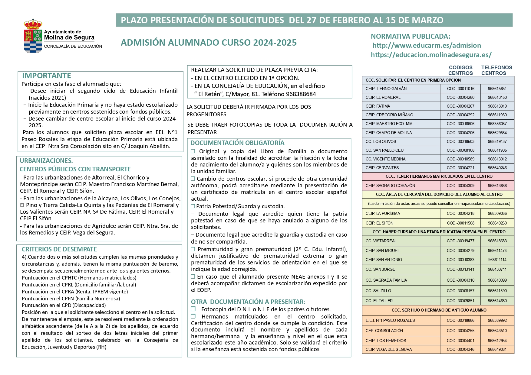 27 Feb Curso 2024/2025 Escrito a las 13:06h En Noticias por Colegio 0 Comentarios Solicitud 2 años Solicitud Infantil y Primaria Solicitud ESO